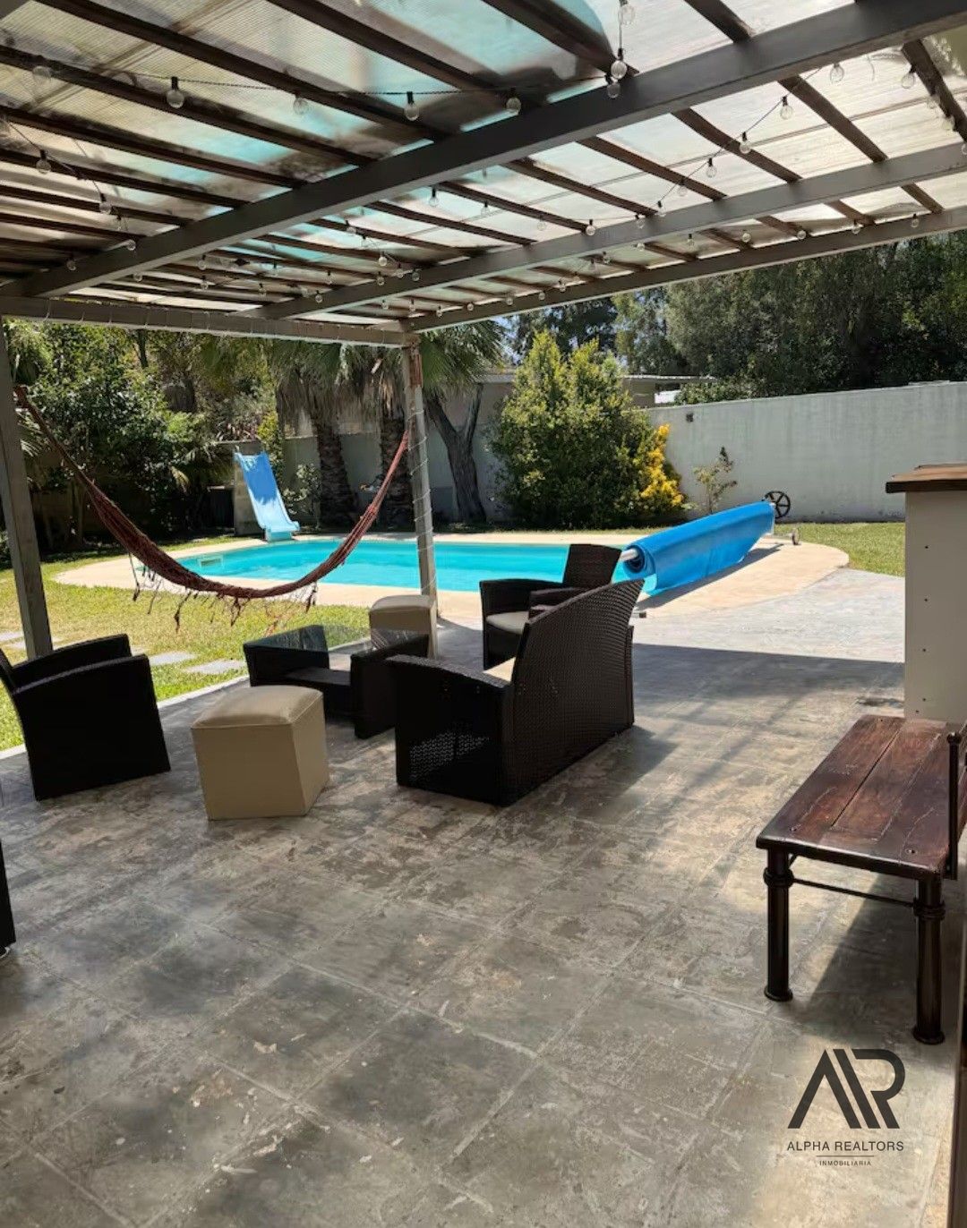 Piscina con tobogán.